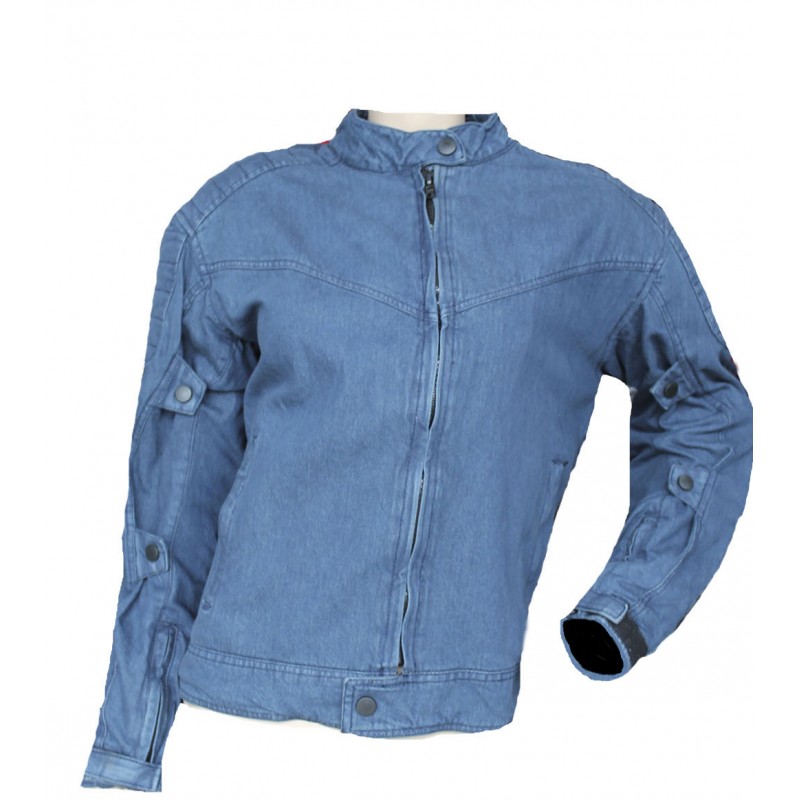 Original chaqueta vaquera con protecciones (CE) en codos, hombros y espalda. Sistema de ventilación integrado, bolsillos con cremallera "YKK"