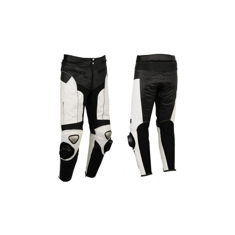 Cremalleras YKK originales. Tiras reflectantes . Ventilaciones con cierre de cremallera. Piel de 1,33 mm de grosor (gran calidad).. Doble cremallera (corta y de 360C) para unirla al pantalón.. Costuras de doble cosido confeccionadas con hilo de Nylon . Protecciones homologadas C.E. en rodillas y caderas, fácilmente extraíbles.. Banda acolchada y elásticos en la parte posterior y en las dos rodillas, que permite la libertad de movimientos en los cambios de posición.. Doble refuerzo de titanio en las rodillas. Forro transpirable interior. Deslizadores desmontables y fácilmente cambiables, unidas al pantalón con Velcro.. Cintura y pernera ajustable. Dos bolsillos delanteros. Cuero de vacuno, piel de gran calidad. Paneles elásticos en parte interior del muslo y entrepiernas para mayor movilidad y seguridad. Cremalleras para unirlo a la chaqueta.